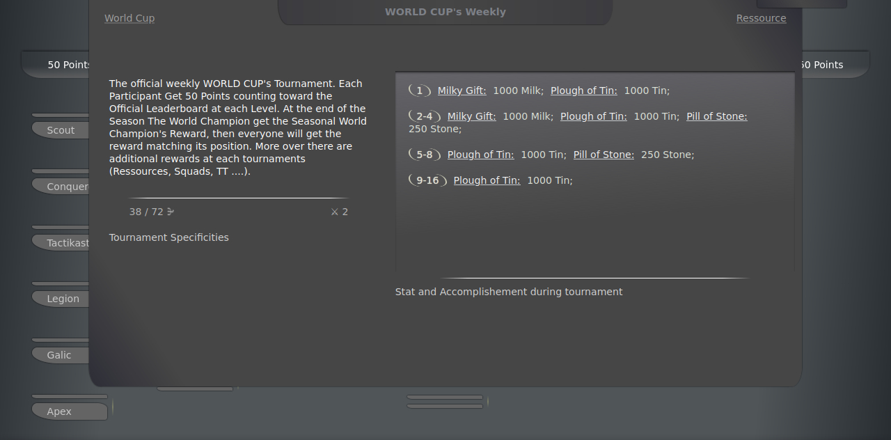 | - Built-in Tournaments and Championship Everyone will be able to live the reality of Sports, and their Tournaments, enter The Brackets and reach The Final. Best overall Tournaments will have Different Categories (Resources, squad, TT). Allowing you to focus on the reward you are looking for;